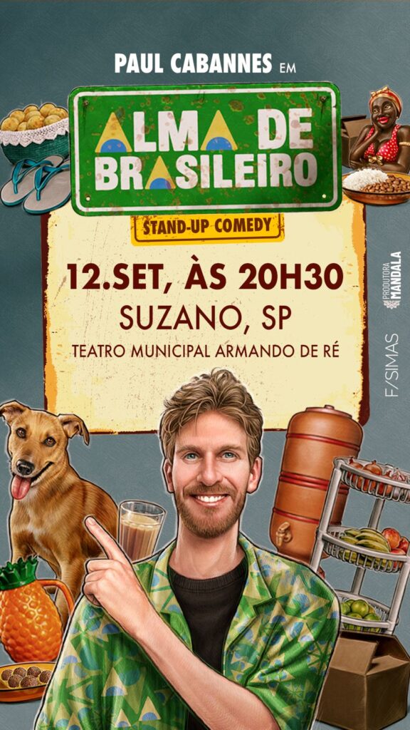 O humorista francês Paul Cabannes, conhecido por seus vídeos nas redes sociais que retratam com bom humor os hábitos e costumes do Brasil, se apresenta em Suzano nesta sexta-feira (12) com o espetáculo “Alma de Brasileiro”. O show será realizado no Teatro Municipal Armando de Ré, na área central.