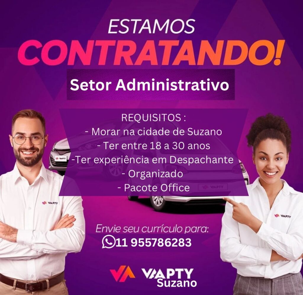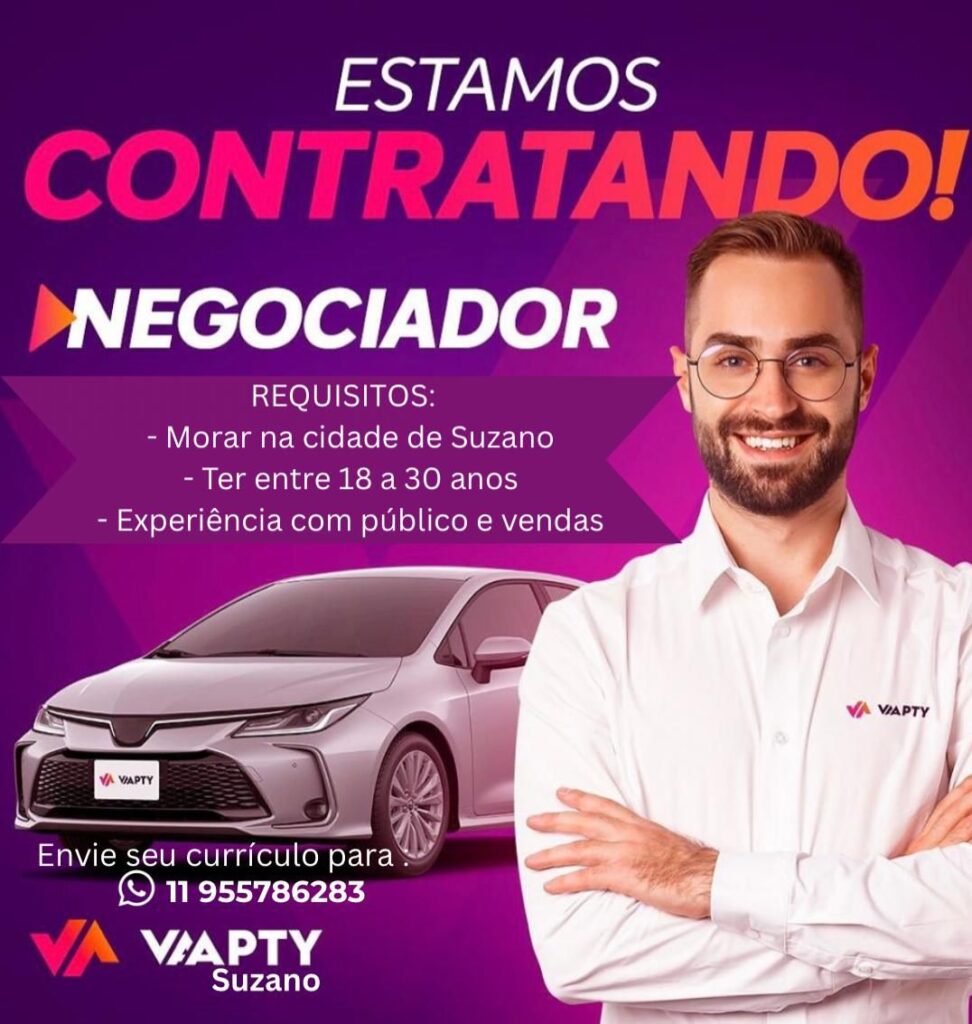 A unidade de Suzano da empresa Vaapty, especializada em vendas de automóveis e que promete vender veículos em 40 minutos, está com oito vagas abertas: três para o setor administrativo, três para o cargo de negociador e duas para a área de pré-vendas.
