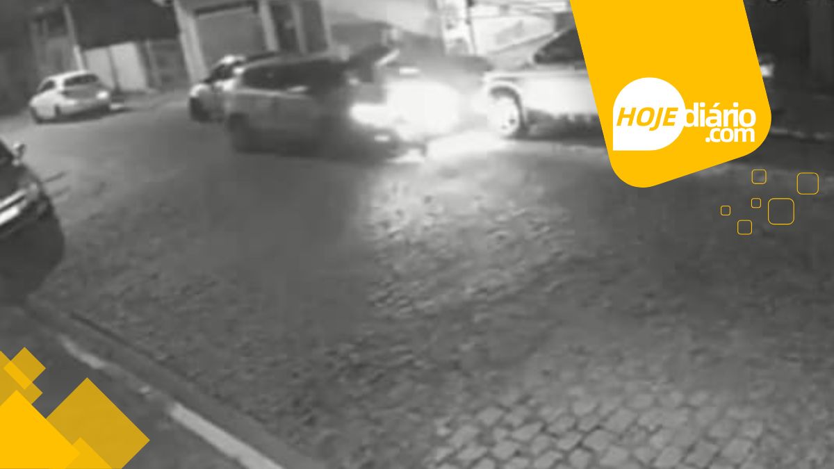 Uma câmera de segurança registrou um grave acidente entre um carro e uma motocicleta na alameda Tenente José Bernardino, no bairro Cidade Cruzeiro do Sul, em Suzano, na noite do último sábado (1º).