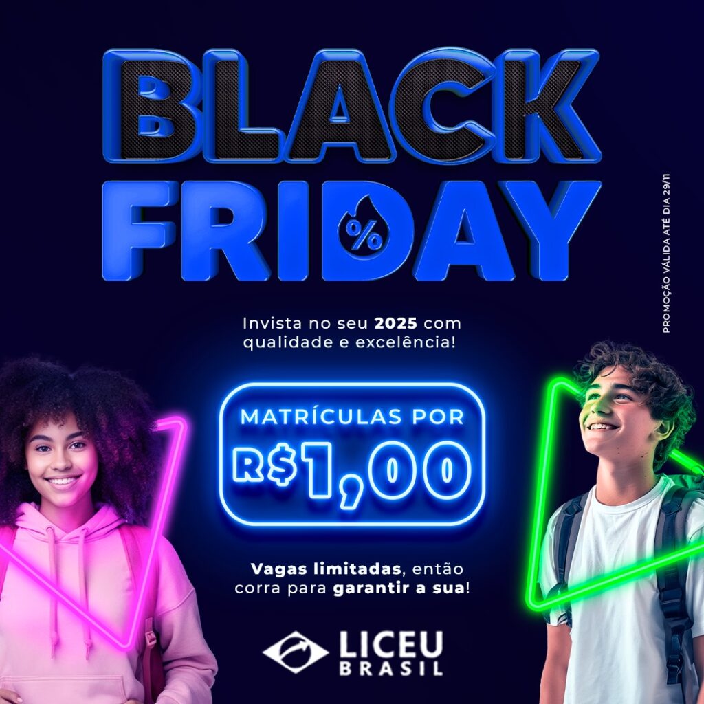 A Black Friday chegou mais cedo nas unidades do Liceu Brasil de Itaquaquecetuba, Suzano e Arujá, com uma oferta que promete movimentar a região, oferecendo matrículas por apenas R$ 1 em todos os cursos disponíveis.