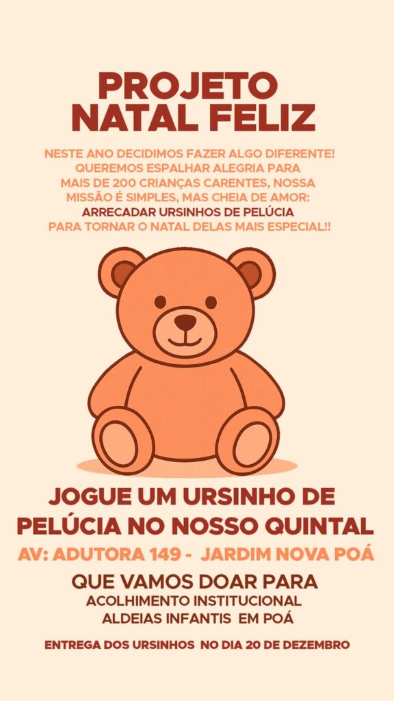 O morador de Poá, Washington Silva Domingues, de 36 anos, transformou a tradicional decoração natalina de sua casa em um gesto solidário. Conhecido na rua pelas luzes que todos os anos chamam a atenção dos vizinhos, ele decidiu unir a decoração a uma ação voltada às crianças atendidas pelo acolhimento institucional Aldeias Infantis SOS, em Poá: arrecadação de ursinhos de pelúcia para as crianças.