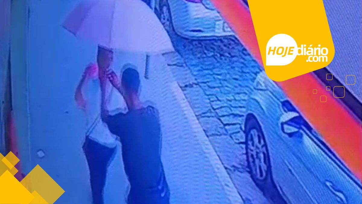 Outro equipamento de monitoramento, instalado na rua Manoel da Silva Ribeiro, via próxima ao local do crime, flagrou o momento em que o criminoso se encontrou com um comparsa, que acompanhava a ação à distância.