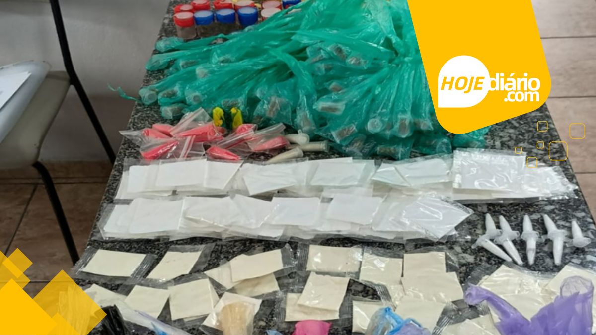Na bolsa, foram encontradas 327 porções de maconha, 207 de crack e 260 de cocaína.