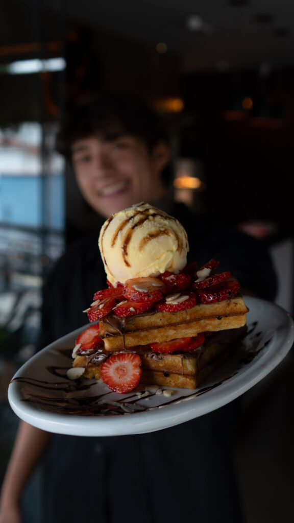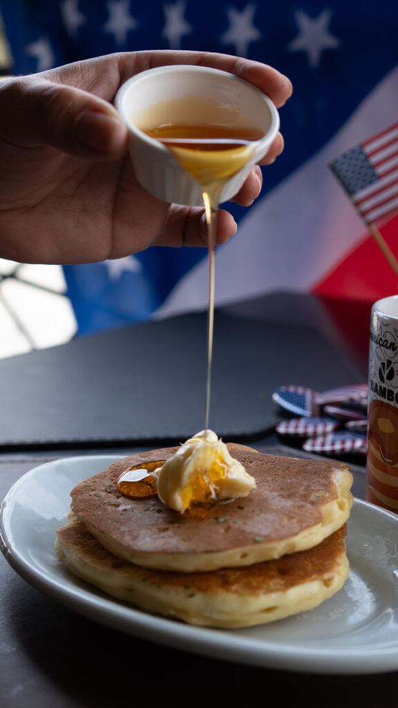 A proposta é clara: transportar o cliente para o típico café da manhã dos Estados Unidos, presente em cenas clássicas de filmes e nas cafeterias que marcaram gerações. Panquecas altas e douradas, com manteiga derretendo lentamente sob o toque do mel; waffles crocantes por fora e macios por dentro; ovos preparados no ponto ideal; bacon sequinho e acompanhamentos variados, tudo pensado para criar memórias, mesmo para quem nunca esteve fora do país.