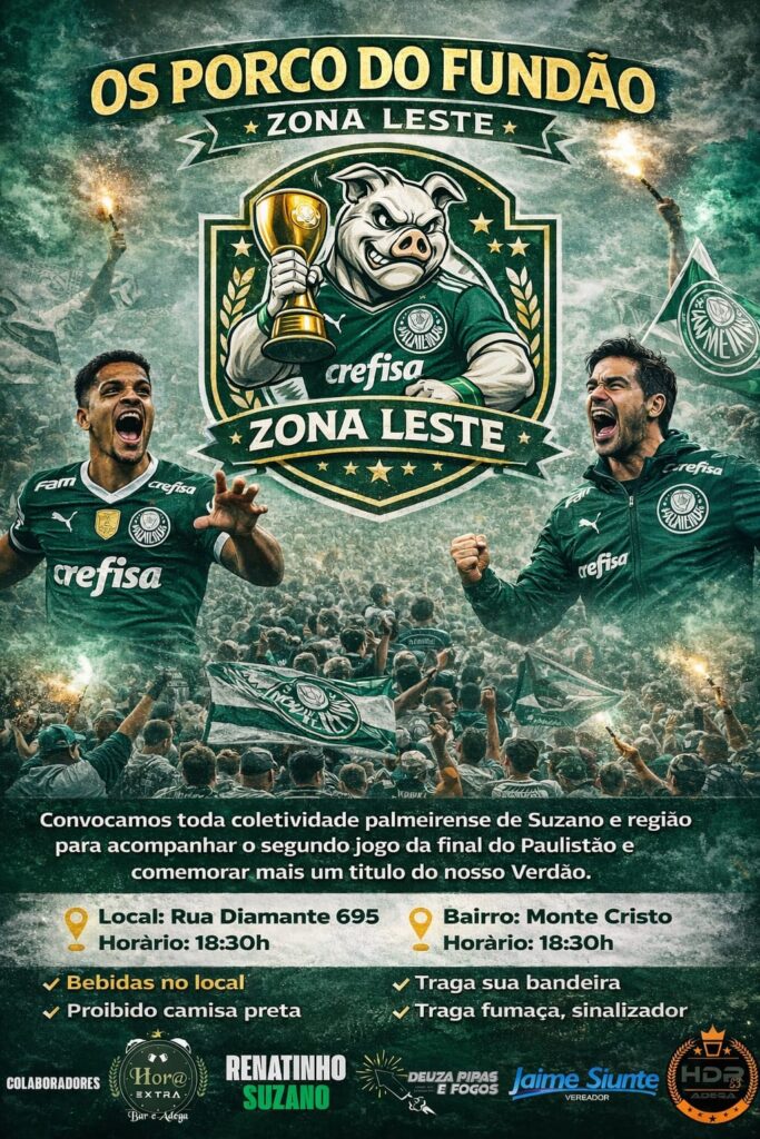 A iniciativa é organizada pelo grupo Porco do Fundão da Zona Leste, em parceria com o Consulado Palmeiras Suzano. A proposta do evento é proporcionar um momento de encontro entre torcedores, amigos e famílias apaixonadas pelo clube, fortalecendo a torcida pelo ‘Verdão’ durante a decisão estadual.