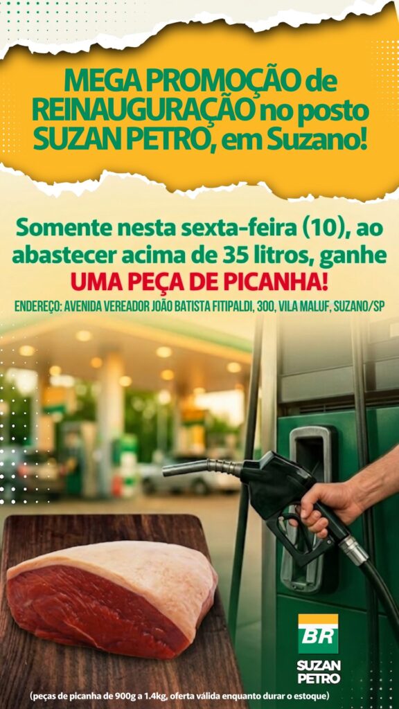 Para marcar a reabertura, o estabelecimento realizará uma ação promocional voltada aos clientes. Durante o dia, quem abastecer mais de 35 litros receberá uma peça de picanha (de 0,9 a 1,4kg). A iniciativa é válida apenas na data da reinauguração e limitada ao estoque disponível, estimado em cerca de 3 mil peças.