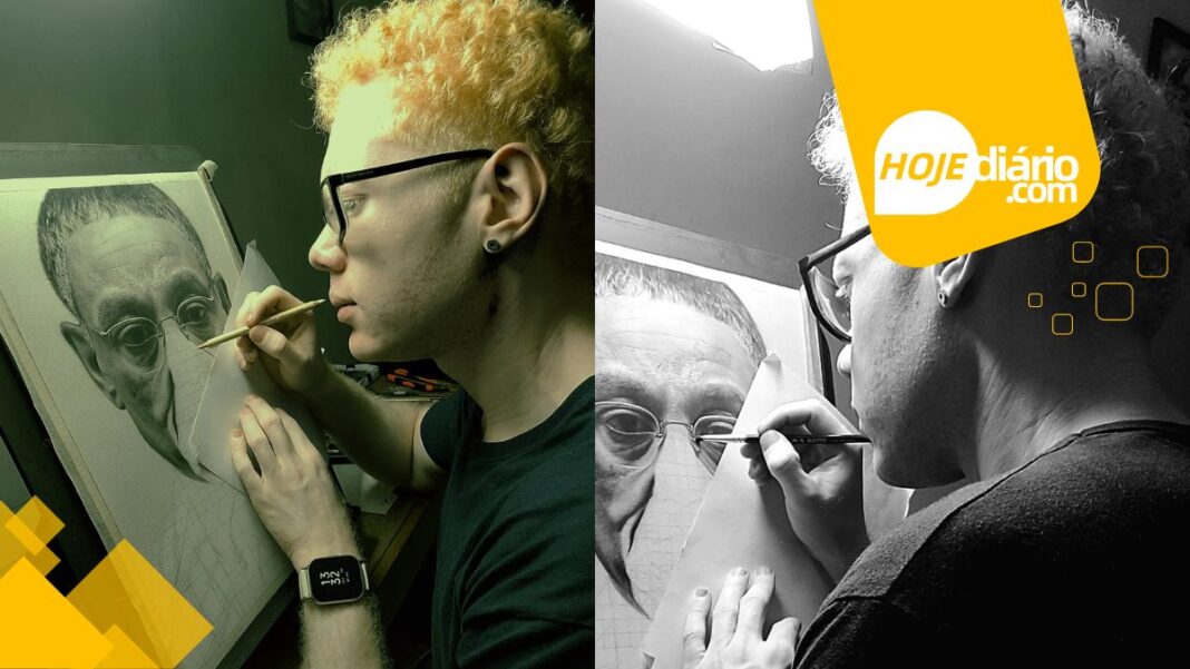 Mesmo enfrentando desafios desde o nascimento, como o albinismo e a visão limitada, ele desenvolveu uma técnica refinada, baseada na observação minuciosa e na sensibilidade artística. Em conversa exclusiva com o portal Hoje Diário, o artista compartilhou detalhes de uma trajetória marcada por persistência e apoio familiar. Foi dentro de casa que o talento começou a florescer, incentivado de perto por quem sempre acreditou em seu potencial, mesmo diante das dificuldades.