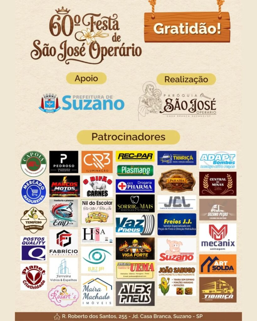 Considerado um dos eventos mais tradicionais da cidade e da região do Alto Tietê, o festejo chega às seis décadas de história. A organização é da Paróquia São José Operário, com apoio da Prefeitura de Suzano.