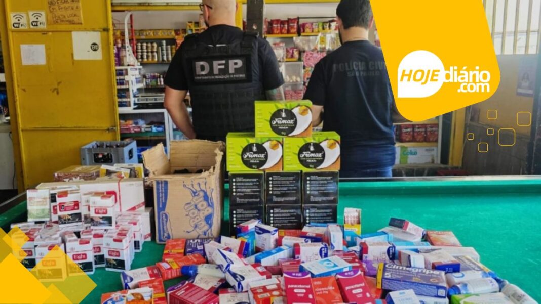 Durante a ação, os fiscais municipais acompanharam a vistoria no local, onde foi identificada a comercialização de cigarros de origem estrangeira, prática considerada irregular. Também foram encontrados diversos medicamentos, cuja venda não é permitida em comércios desse tipo.