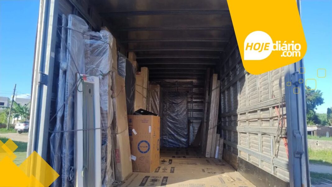 Ainda segundo a PM, durante buscas na região, uma mulher foi encontrada em outro imóvel e, com ela, havia um televisor pertencente à carga roubada. As vítimas estiveram no local e reconheceram os bens recuperados.