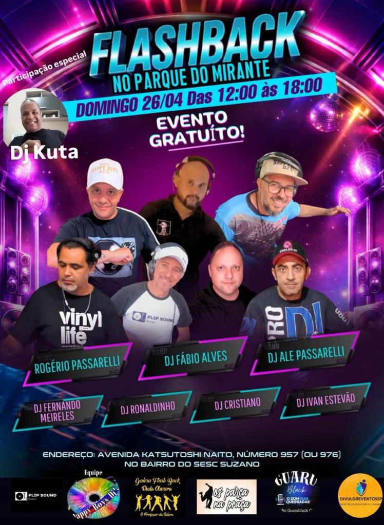 O Parque do Mirante, localizado no bairro do Sesc, em Suzano, recebe neste domingo (26) mais uma edição do evento “Flashback no Parque do Mirante”. A programação acontece das 12h às 18h, com entrada gratuita e classificação livre.
