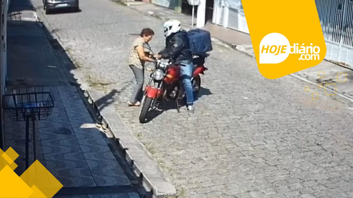 A idosa estava em frente a um imóvel na rua Concreta quando foi abordada por um indivíduo em uma motocicleta. O homem se passou por entregador de delivery e iniciou uma conversa, pedindo informações. Ao perceber que a vítima demonstrava disposição em ajudar, ele anunciou o assalto.